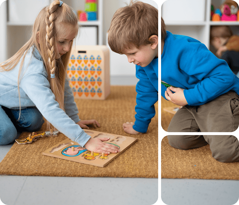 Montessori preschool classrooms are thoughtfully designed “prepared environments” where every element serves a purpose. Child-sized furniture allows independence. Preschool materials are organized on open shelves, inviting exploration.